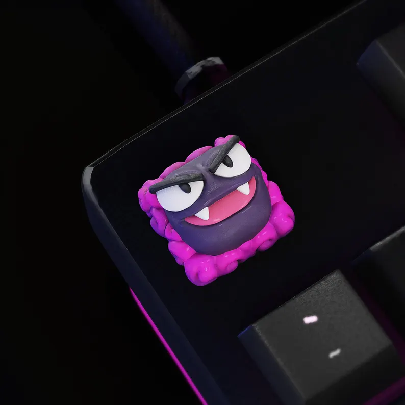 Keycaps de Pokémon inspirados en las evoluciones de Gengar: Gastly, Haunter y Gengar. Hechos en resina ABS pintada a mano, resistentes y compatibles con teclados mecánicos Cherry MX. Un toque oscuro y coleccionable para tu setup gamer.